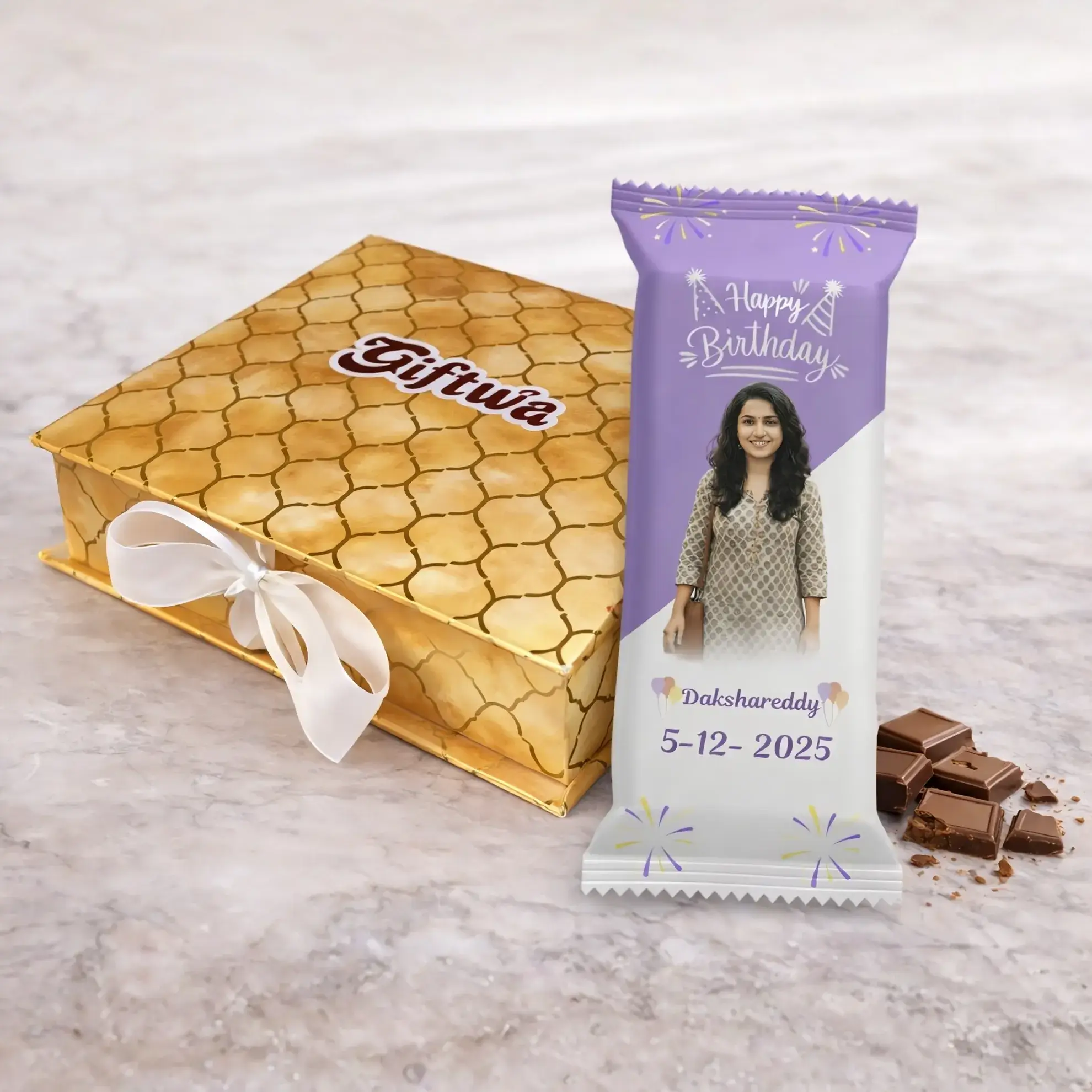 Our Personalized Chocolate Gift Hamper transforms a simple kitkat chocolate into a meaningful memory. Each KitKat is wrapped with your chosen photo and name, turning it into a heartfelt unique birthday surprise gift for wife, girlfriend, husband, or best friend.